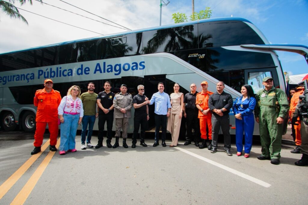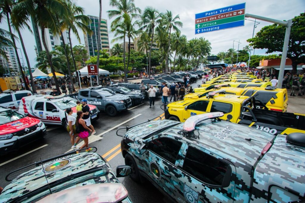 O governador Paulo Dantas e o secretário de Estado da Segurança Pública, Flávio Saraiva, fizeram, neste domingo (20), a maior entrega de equipamentos para as forças policiais alagoanas, que somam mais de R$ 50 milhões em investimentos. A solenidade foi realizada em frente ao Marco dos Corais, na Ponta Verde, em Maceió, e atraiu grande público. Durante a cerimônia, também foram assinadas ordens de serviço e anunciados novos investimentos no setor.