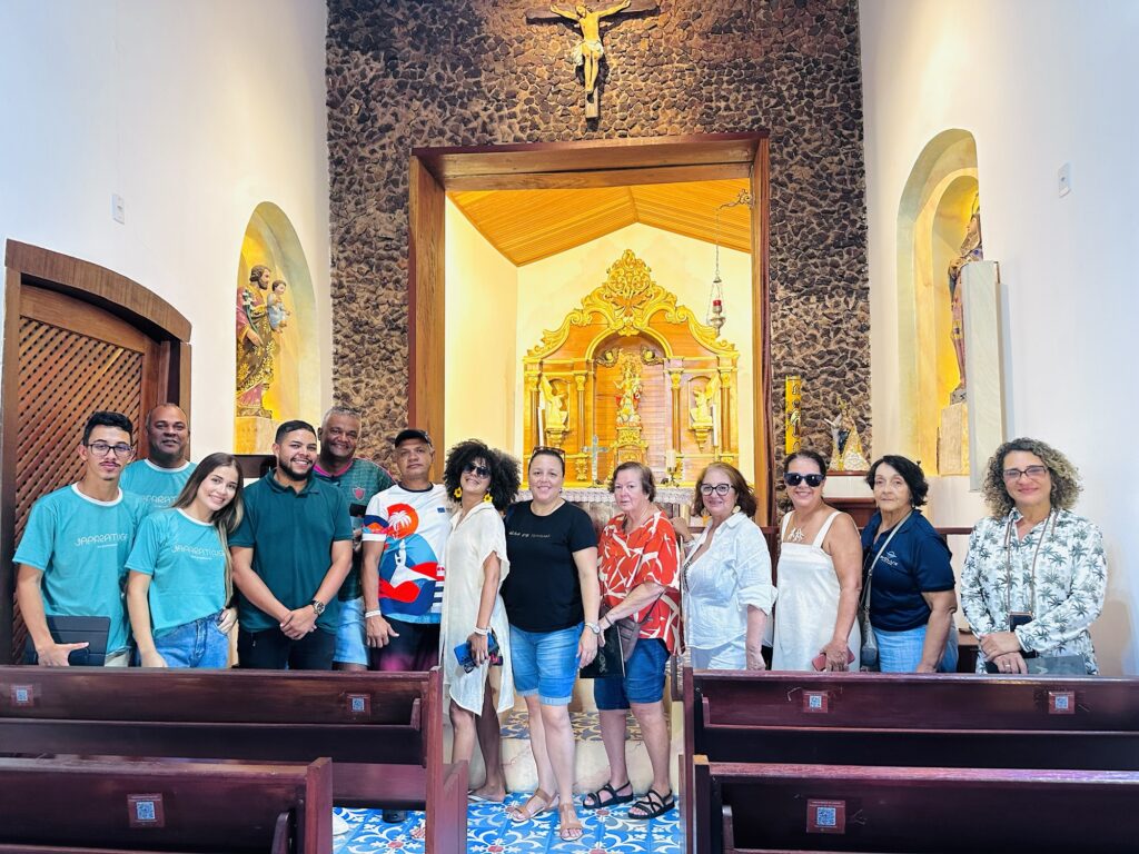 Durante a programação, os agentes participaram de um roteiro guiado por pontos estratégicos de Japaratinga, com destaque especial para a Igreja Matriz de Nossa Senhora das Candeias, um dos principais símbolos históricos e religiosos da cidade. No local, os visitantes conheceram a trajetória da igreja e sua importância para a formação cultural do município, por meio das explicações do informante turístico Marcelo, responsável por conduzir a narrativa histórica do espaço.