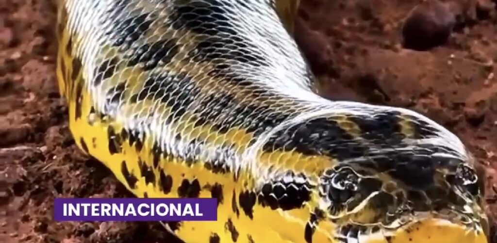 Nas imagens, é possível ver as cores vibrantes do animal, que se assemelham ao padrão de uma onça-pintada, além de toda a extensão de seu corpo e movimento rastejante.