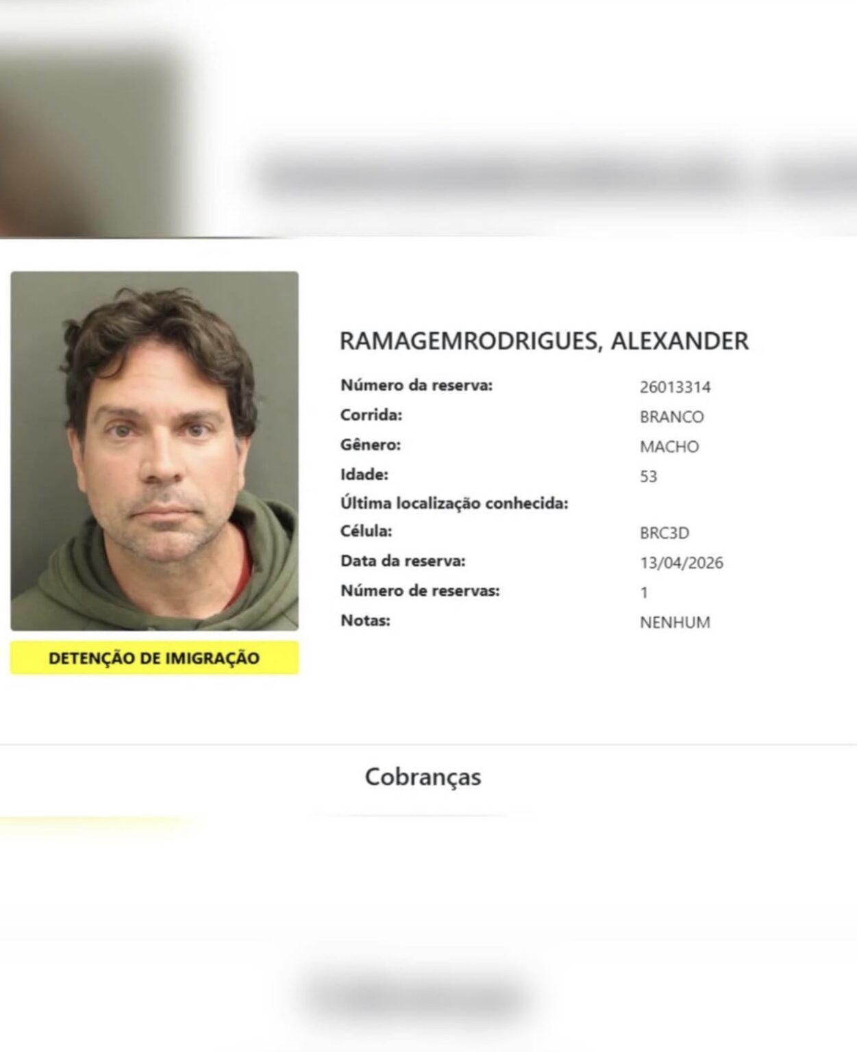 Contudo, aponta que ele se encontra detido por razões ligadas à imigração (“immigration hold”). Até o momento, as acusações contra o ex-diretor da Agência Brasileira de Inteligência (Abin) não aparecem no registro.