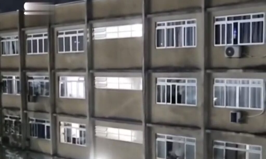 Que susto! – Um vídeo mostra os gritos e moradores saindo às pressas do prédio que afundou cerca de 40 centímetros em Itajaí, no Litoral Norte de Santa Catarina. As imagens foram feitas por pessoas no edifício em frente.